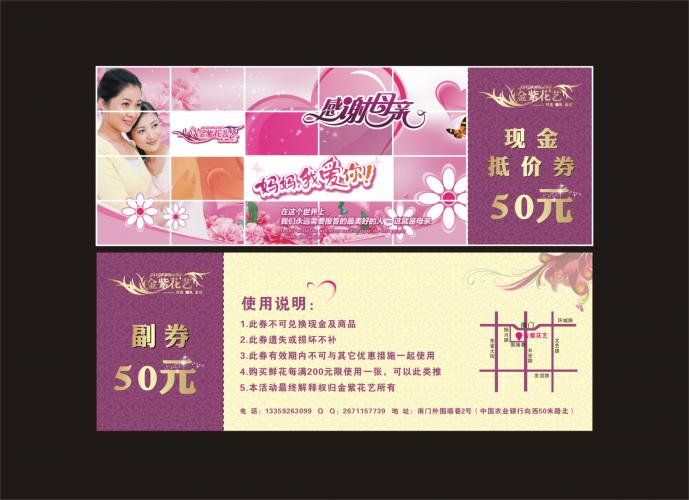 金紫色花艺优惠券设计